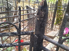 На могиле в первую очередь мы занялись оградой. Обожгли старую краску. В этот раз обжиг занял больше времени. Пришлось жечь ее в два захода.